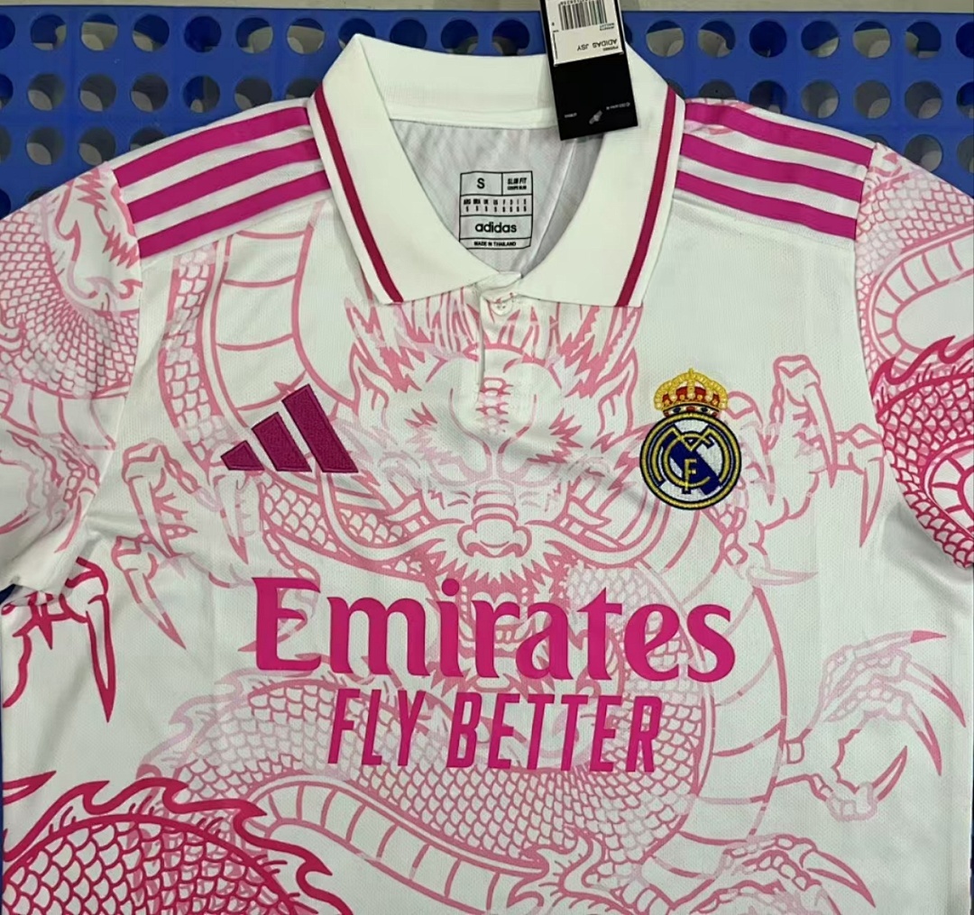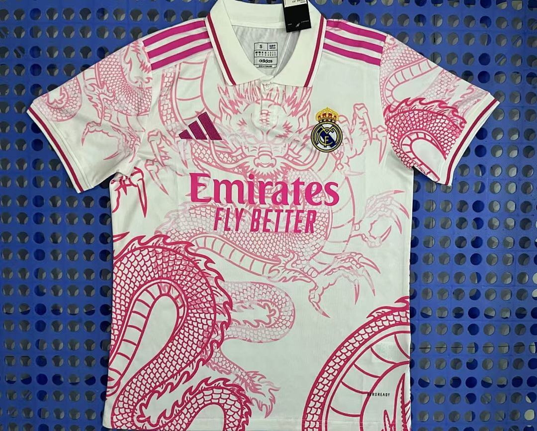 2025 Real Madrid Pink and White Dragon POLO2025 Real Madrid Pink and White Dragon POLO