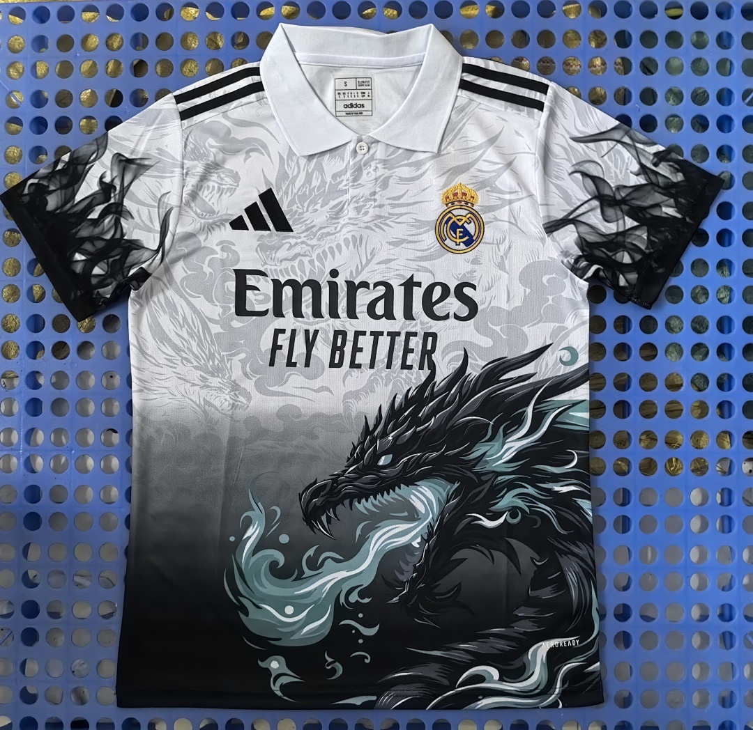 2025 Real Madrid Spray Dragon White POLO2025 Real Madrid Spray Dragon White POLO